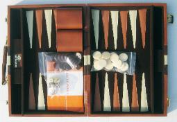 | DESCRIPTION Backgammon is a centuries old game in which the players by strategy and chance race to be the first to escape the playing board. Play consists of capturing, building barricades, calculating odds, and offering to double the playing stakes Cloth Vinyl Interior Open Game Board: 15" x 19.5" Shipping Wt: Approx. 3.25 lbs. |
