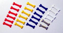 | 1 Plastic Dog body 1 Red plastic collar 1 Yellow bone bucket base (3 AA batteries not included) 1 Battery cover 24 Playing cards (listing below) 1 Cat's paw tweezers 24 Plastic bones 6 Red bones 6 Blue bones 6 White bones 6 Yellow bones Rules Playing card listing 24 Playing cards 5 Red bone cards 3 1-Bone cards 1 2-Bone cards 1 3-Bone cards 5 Blue bone cards 3 1-Bone cards 1 2-Bone cards 1 3-Bone cards 5 White bone cards 3 1-Bone cards 1 2-Bone cards 1 3-Bone cards 5 Yellow bone cards 3 1-Bone cards 1 2-Bone cards 1 3-Bone cards 4 Blank cards (not included) (for replacing cards) |
