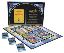 | DESCRIPTION - from the game The object of Divinity game is move around the game board to reach finish by answering questions from the Question and Answer booklets. There are three levels of difficulty allowing everyone to play whether at home, in your parish or in the classroom. Shipping Wt: Approx. 2.5 lbs. |