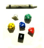 | NOTE: Box in excellent condition. Manual and Rulebook were carefully punched (not to affect reading text) for a 3-ring binder and staples were carefully removed. Both books without marks and in great shape. Dice (6 different colors) and white crayon not original (pic below). RGPA membership application not included. Any questions? Email us Click Pic to Zoom-In |