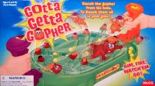 | DESCRIPTION Gotta Getta Gopher is a very popular 2-player target game that requires skill and speed with a shooter. Each player has 8 gophers which are placed into holes in the game base. They then simultaneously launch balls out of the shooters aiming for the ramps beneath their opponent's gophers to knock them out from their holes. The first player to knock out all gophers wins. For advanced play, each player has a "wild" gopher with a black cap which may be placed in any hole and must be the last gopher knocked out to win. Shipping Wt: Approx. 2.5 lbs. |