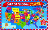 | DESCRIPTION - from the game Based on the best selling game, Great States!, this junior version provides the same fun, hurry-up action while introducing young players to the map of the 50 states. Find the shape! Find the picture! Find the name! Kids will have a blast searching the game board to find where things are as they travel along the red, white and blue game path. Even pre-readers can play! With a bit of help to get them started, pre-readers match the objects on the cards to the pictures on the board. Shipping Wt: Approx. 3.5 lbs. |
