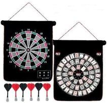 | 1 Double-sided roll up board 6 Magnetic darts 3 Red darts 3 Black darts Rules |
