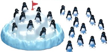 | DESCRIPTION - from the game There is much ado in the penguin colony. The iceberg shakes with all the commotion. All the penguins want a place on the iceberg, but only those who can keep their balance can avoid the icy water below! Steady hand and careful planning are needed to balance all your penguins on the slippery iceberg. If you succeed before the other players, you win the game! But if the penguins fall, you must start again with all the penguins that fell joining your colony. Shipping Wt: Approx. 2.5 lbs. |