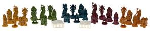| 1 Ancient Earth Game Board (20" x 30") 1 Underworld Game Board 5 Ancient Armies Norse Army (60 Soldiers, 10 War Elephants) Celtic Army (60 Soldiers, 10 War Elephants) Greek Army (60 Soldiers, 10 War Elephants) Babylonian Army (60 Soldiers, 10 War Elephants) Egyptian Army (60 Soldiers, 10 War Elephants) 5 Sets of Gods 5 Gods of War (1 x 5 colors) 5 Goddesses of Magic (1 x 5 colors) 5 Gods of the Sky (1 x 5 colors) 5 Gods of Death (1 x 5 colors) 5 Pantheon cards (1 each per player) 110 Game cards 66 Miracle cards 44 Territory cards 12 Temples 78 Faith tokens 18 5-Point Faith tokens 60 1-Point Faith tokens 1 Reference Card 1 Epoch Marker 5 Plague Markers 5 Turn Order Markers (#1 to #5) 1 Sunken Atlantis Marker 1 Maelstrom Marker 10 Standard 6-sided dice 5 White 5 Black 1 Rulebook |