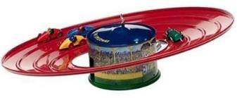 | DESCRIPTION - from the game Put the cars on the track so they go clockwise. An extra car is included in case one is lost or gets damaged. Put the key in the top of the motor house and wind up the Speedway. There is an ON-OFF switch on the side of the house. You may move the switch handle up a little to move it on the ON position. You can change the position of the cars while they are racing. Simply hold the rim of the track for a second with your hand. This will change the positions of the cars. Shipping Wt: Approx. 3.5 lbs. |