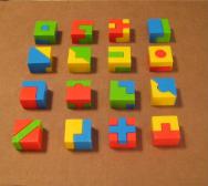 1975 Game Contents Hinged Box (or) Lift Off Box Cover 1 Plastic game unit with 1 Wind-up timer 1 Spring-loaded platform 16 Geometric pattern cards* (see below) 32 Geometric pieces Rules * NOTE: About half the time we find games in this year that are made without game cards. 1976 Game Contents Hinged Box Cover (or) Lift Off Box Cover 1 Plastic game unit with 1 Wind-up timer 1 Spring-loaded platform 32 Geometric pieces Rules |