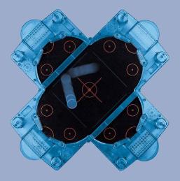 1 Plastic game board (with 4 scorekeepers) 3 Playing field dividers 1 Angled divider 2 Straight dividers 12 Plastic pucks Rules Requires 4 "C" Batteries (not included) |