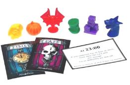 | 1 Trifold game board 1 DVD disc 156 Cards 54 FATE cards 102 TIME cards 6 Plastic character movers 1 Anne de Chantraine 1 Baron Smedi 1 Countess Eliz. Bathory 1 Gevaudan 1 Helin 1 Khufu 37 Plastic keys 6 Red keys 6 Blue keys 6 Green keys 6 Purple keys 6 Orange keys 6 Yellow keys 1 Black key 6 Plastic key racks 6 Character cards 1 Anne de Chantraine 1 Baron Smedi 1 Countess Eliz. Bathory 1 Gevaudan 1 Helin 1 Khufu 1 Well of fears top 1 Well of fears bottom 1 Pencil 1 Pad of paper 2 Standard 6-sided dice Rules |