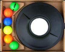 | Published without Golf Clubs (use your own golf clubs) 6 Glow-in-the-Dark Cups 6 Glow-in-the-Dark Golf Balls 1 Red ball 1 Blue ball 1 Green ball 1 Green ball with stripe 1 Orange ball I Yellow ball Rules (with 30+ games) |