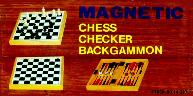 Chess, Checkers and Backgammon Set (Magnetic) ©No Date, Made in Taiwan Ages: 6 and Up Players: 2 |
