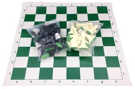 | 1 Plastic tube w/shoulder strap (with screw on cap) 1 Roll-up vinyl mat 32 Plastic chess pieces 16 Black chess pieces 16 White chess pieces No Rules with this game |