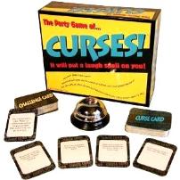 | DESCRIPTION In the Curses game curse cards are played on other players and force them to continually perform certain actions, such as barking like a dog whenever the player to the right reads a card or hold on to the card with both hands at all times. If another player notices that you are not performing your action, you "break the curse" and turn it face down in front of you. Shipping Wt: Approx. 2 lbs. |