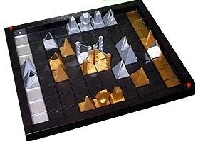 DESCRIPTION - from the game Unlike chess or checkers, Deflexion begins with the pieces spread over the board. Many different starting configurations will give interesting and enjoyable games. The two configurations shown below have been tested extensively. They offer plenty of opportunities for skillful strategic maneuvers (and they are not as complicated as they look). We recommend that you start with the CLASSIC setup. then as you become more experienced, try IMHOTEP for new strategic possibilities. Shipping Wt: Approx. 5 lbs. |