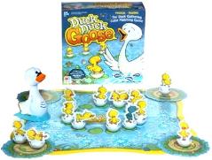 DESCRIPTION - from the game Move the animated goose around the pond and makes its wing flap up and down. With each splash the goose calls out "DUCK" or "GOOSE". When you hear "GOOSE", pick up the adjacent duck and see if the color on the bottom matches one of the colors in your nest. The first player to gather 3 ducks into their nest wins! Press the tail and everyone gets to hear the song! Shipping Wt: Approx. 3 lbs. |