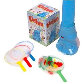 | DESCRIPTION - from the game When this adorable elephant takes a deep breath and blows, dozens of colorful butterflies fly out of his 4-foot trunk! Can you catch them in your butterfly net? The object of the game is to be the player who catches the most butterflies! Shipping Wt: Approx. 4 lbs |