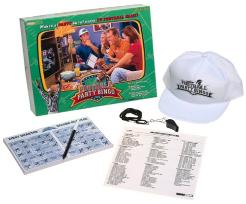 | DESCRIPTION - from the game Now everyone can enjoy the excitement of watching their favorite team, while playing Football Party Bingo - the game that turns any TV football game in a party. Based on what happens during the televised game - punt, completed pass, touchdown - players mark corresponding squares on their cards, and when they've marked five-in-a-row, it's "BINGO"! And with four quarters of play, there's a possibility of four winners per game! But watch out for the yellow flag, as the person wearing the referee hat not only calls-out the individual plays, but blows the whistle on those having a little too much fun. So, invite up to 32 of your closest friends over for a Monday night match-up, a Saturday afternoon game, or a Sunday showdown. Shipping Wt: Approx. 2.5 lbs. |