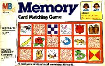 Original Memory Card Matching game 72 Card Edition ©1980, Milton Bradley Ages: 4 to 8 Players: 1 or more Memory Card Matching game 108 Card Edition ©1980, Milton Bradley Ages: 4 to 10 Players: 1 or more |