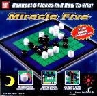 | DESCRIPTION In Miracle Five players attempt to place their pieces on the board in a row of five. There are special movements such as flipping pieces over and moving into colored zones. Shipping Wt: Approx. 1.5 lbs. |