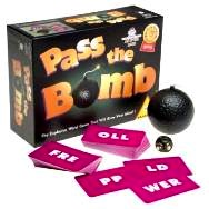 | DESCRIPTION - from the game The object of Pass the Bomb game is to make words which include the letters printed on the card before the bomb goes off. Shipping Wt: Approx. 2 lbs. |