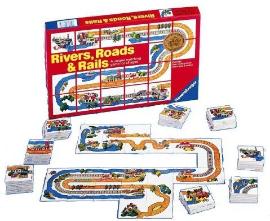 Rivers, Roads & Rails game ©1989, Ravensburger Ages: 5 to Adult Players: 1 to 8 |