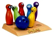 | DESCRIPTION - from the game These 6 pins will bowl you over with laughter! They all know when they're up -- and when they're down! Did you get a strike, a spare? The pins announce your score for each frame through the talking base!The object of Silly 6 Pins game is to roll the ball to knock down as many pins as you can! Shipping Wt: Approx. 4.5 lbs. |
