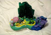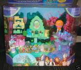 1 Play set base (with 2 opening sections) 1 State Fare balloon with basket 10 Figurines 1 Dorothy 1 Wicked Witch 1 Glinda 1 Cowardly Lion 1 Tin Man 1 Scarecrow 1 Wizard 1 Red munchkin 1 Blue munchkin 1 Green munchkin Instructions |